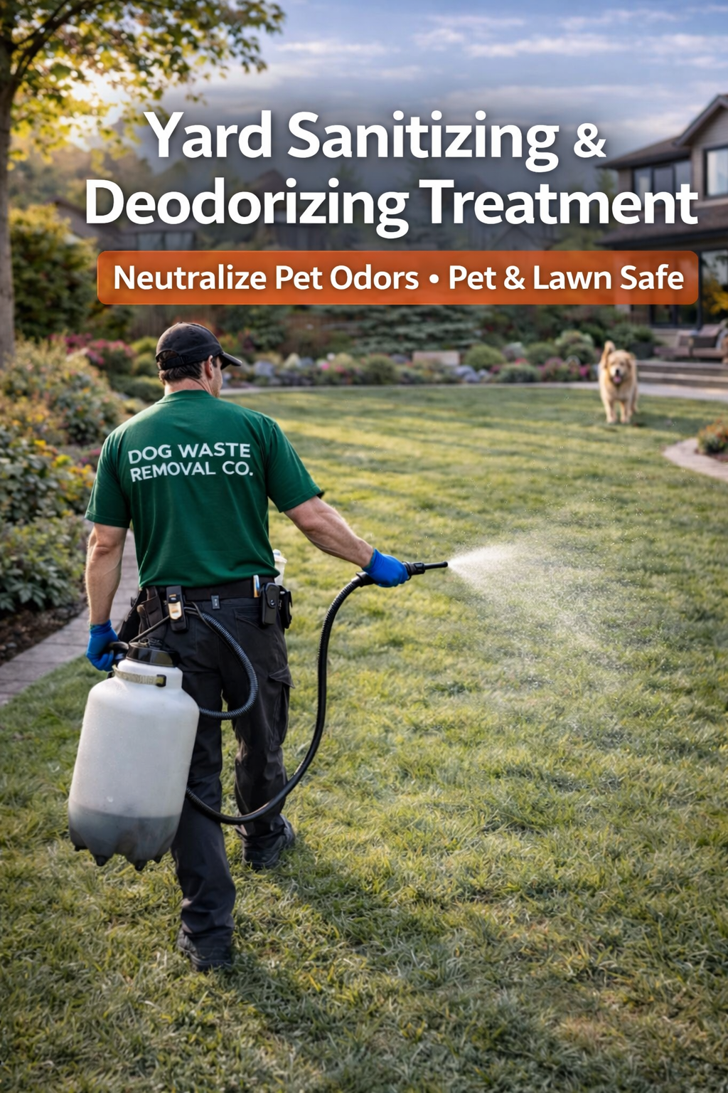 • Upgrade any visit with our Yard Sanitizing & Deodorizing Treatment (+$10) to help neutralize pet odors and reduce bacteria in high-traffic areas